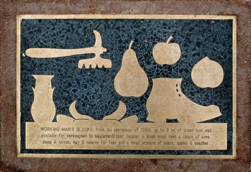Pavement inlay displaying local industries. Sandy Naulty, artist.