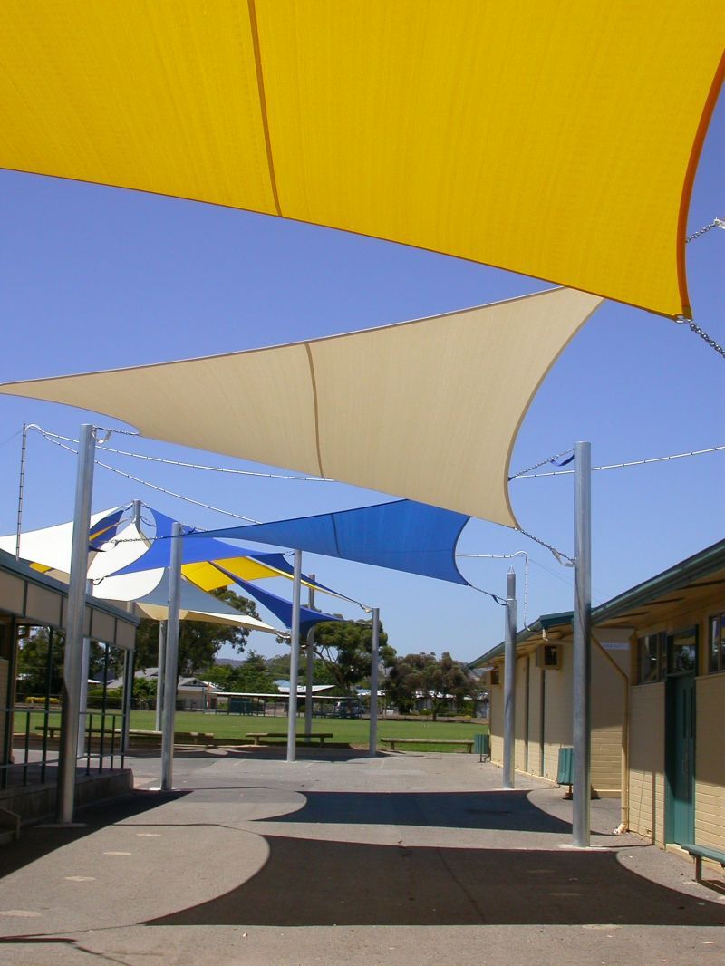 'Learning Pathways': East-west corridor using sail shades, featuring a main link between buildings, Concept, design and implementation.