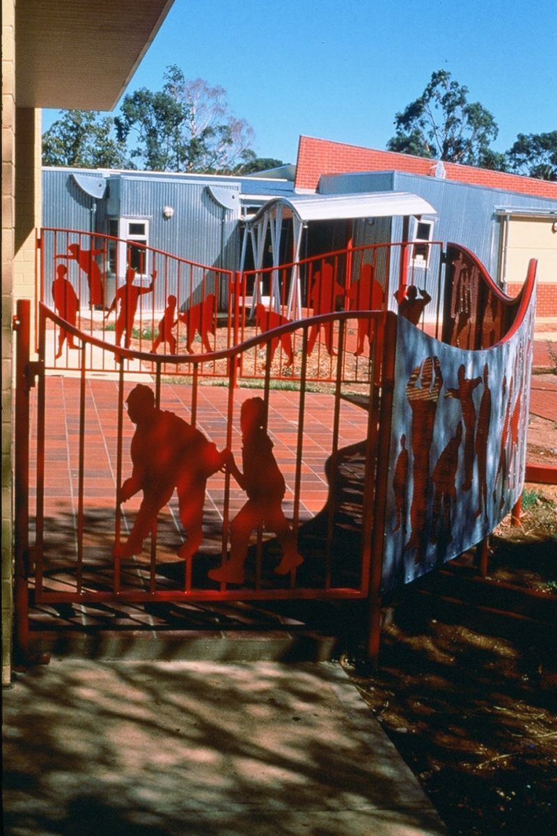 An award winning image change and name change from Elizabeth West Primary School. Architect Patricia Les, Artist-Designer Margaret Worth. Fence design Julie Blyefield.