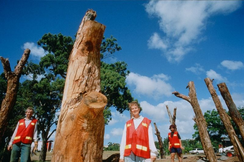 Installation day for 50 tree trunks.